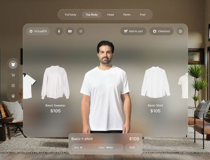 O provador físico cede espaço ao espelho digital. Em boutiques digitais ou apps especializados, o cliente cria um avatar 3D com base em seu corpo real — escaneado por celular ou em cabines de alta tecnologia.