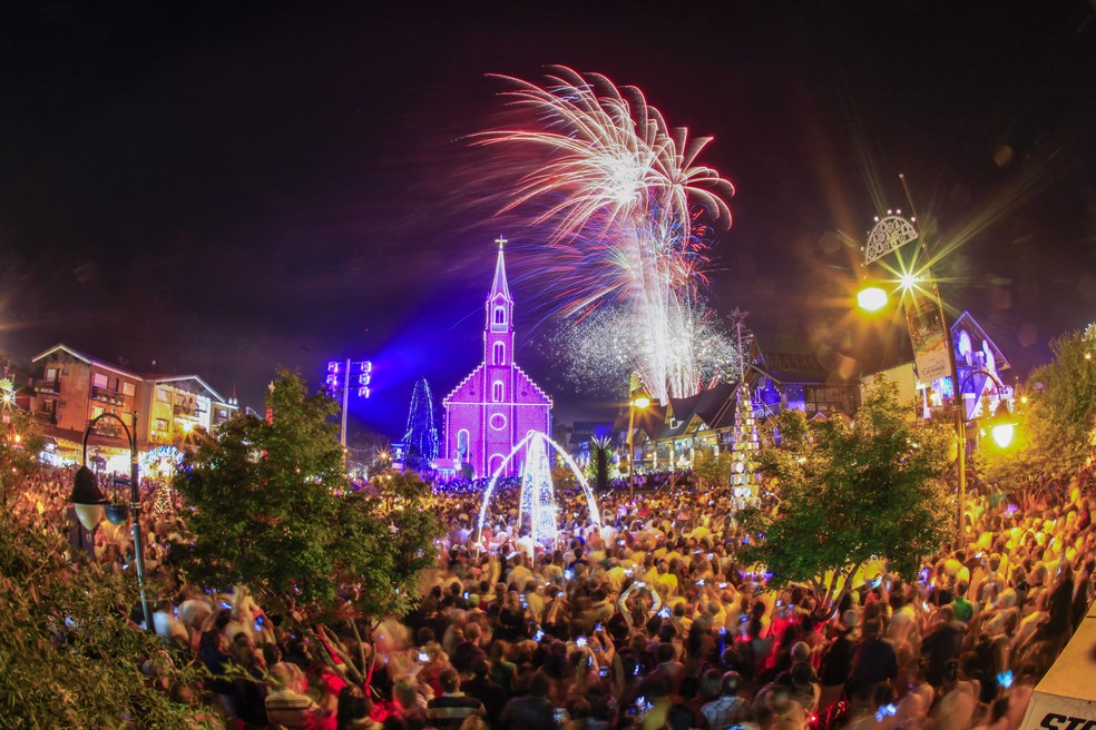 Tradicional queima de fogos em Gramado.