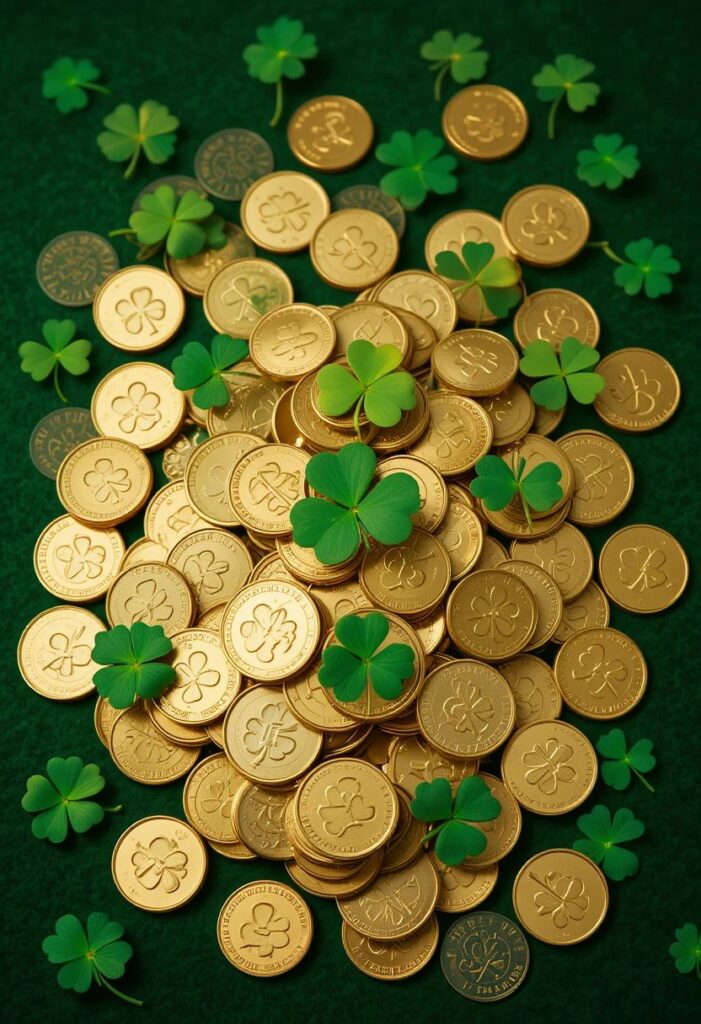 Outra fala sobre os leprechauns, criaturas travessas da mitologia celta, que escondem potes de ouro no fim do arco-íris.